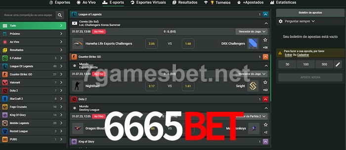 O 6665Bet oferece uma grande seleção de opções de apostas em e-sports com probabilidades competitivas